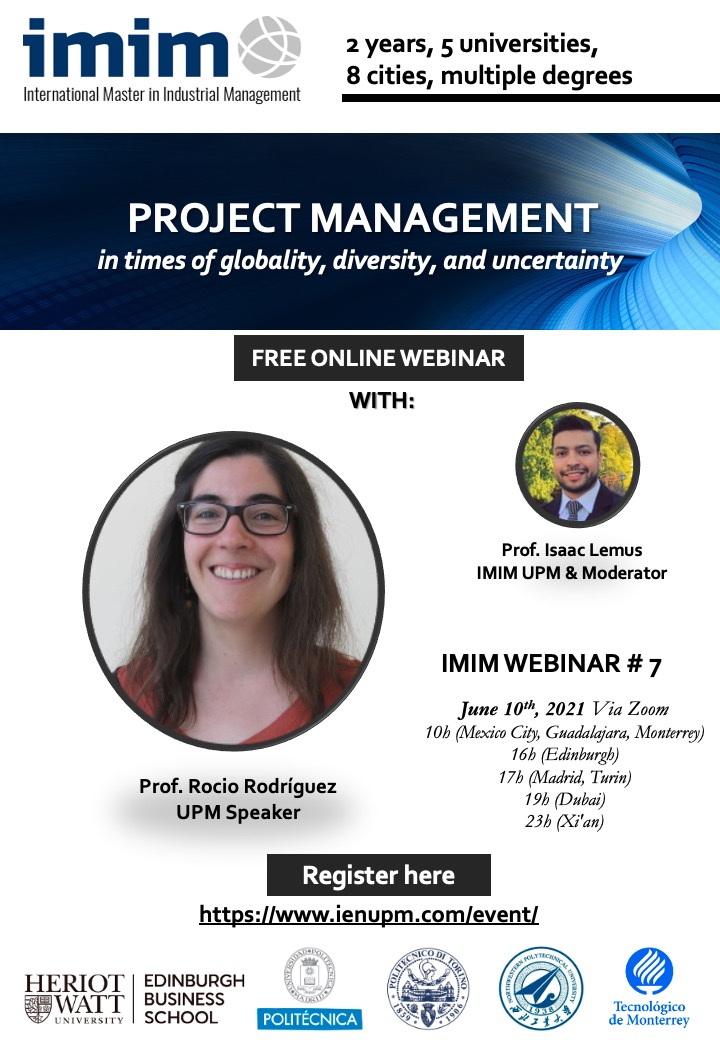 IMIM Webinar 7: PROJECT MANAGEMENT in times of globality, diversity, and uncertainty. Speaker: Prof. Rocío Rodríguez Rivero (Universidad Politécnica de […]