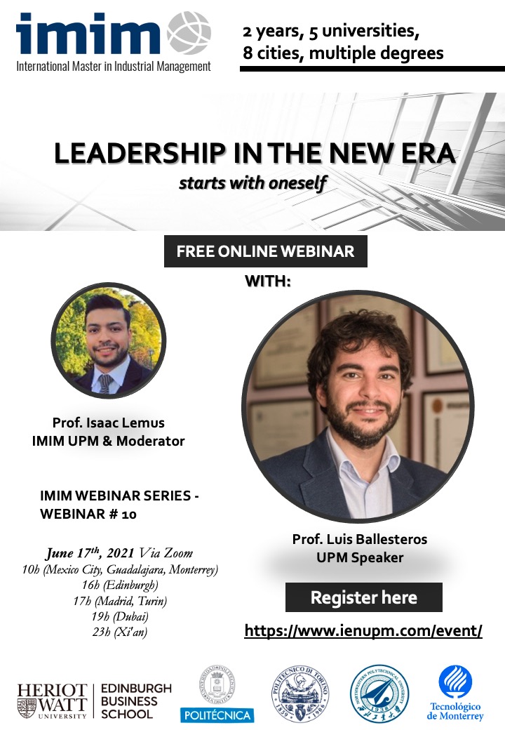 IMIM Webinar 8: LEADERSHIP in the new era starts with oneself. Speaker: Prof. Luis Ignacio Ballesteros Sánchez (Universidad Politécnica de […]