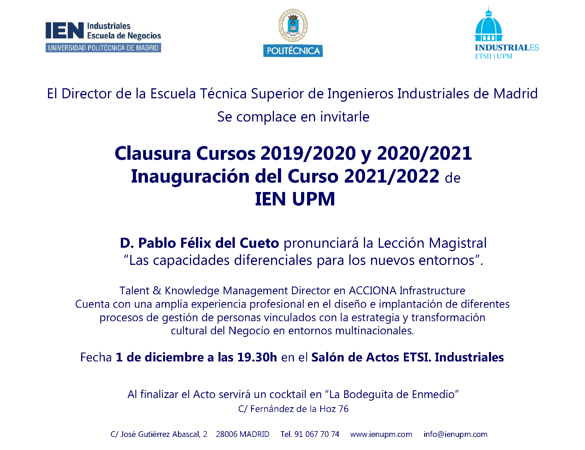 La Clausura Cursos 2019/2020 y 2020/2021 e Inauguración del Curso 2021/2022 de los Programas MBA Internacional de IEN UPM
