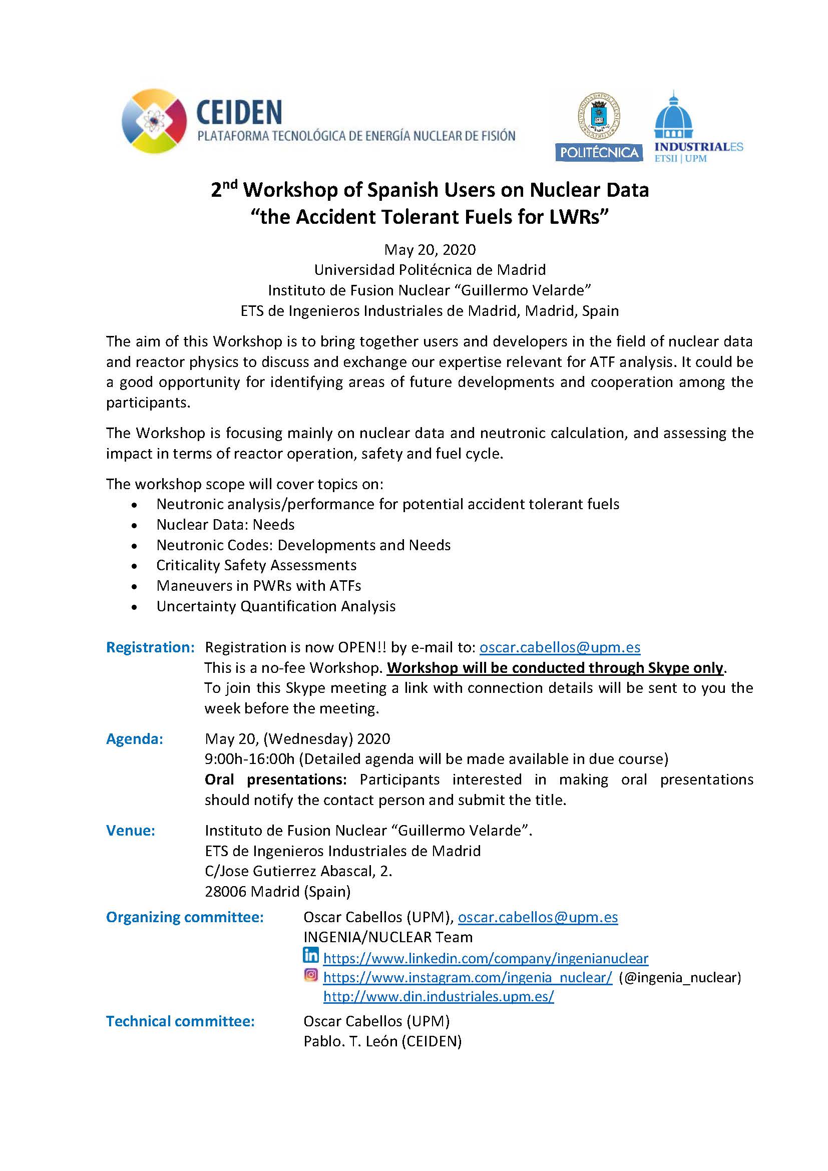 Organizing committee: Oscar Cabellos (UPM), oscar.cabellos@upm.es